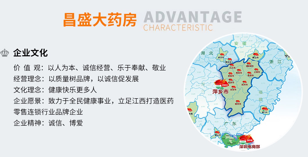 宜春市昌盛大藥房有限公司于2014年在當?shù)毓ど虣C關(guān)登記成立,位于江西省宜春市上高縣工業(yè)園,這里交通便捷!宜春市昌盛大藥房有限公司是一家重發(fā)展、重質(zhì)量的企業(yè)。一直以穩(wěn)定的產(chǎn)品質(zhì)量和良好的經(jīng)營信譽,取得了......